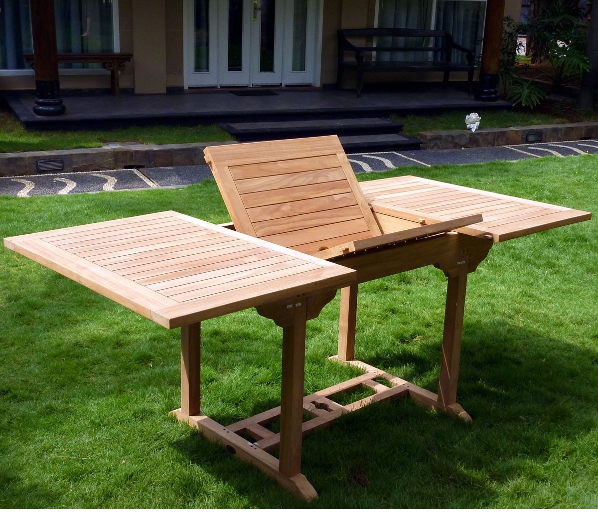 Cette table en teck massif vous permettra de recevoir jusqu’à 8 personnes.